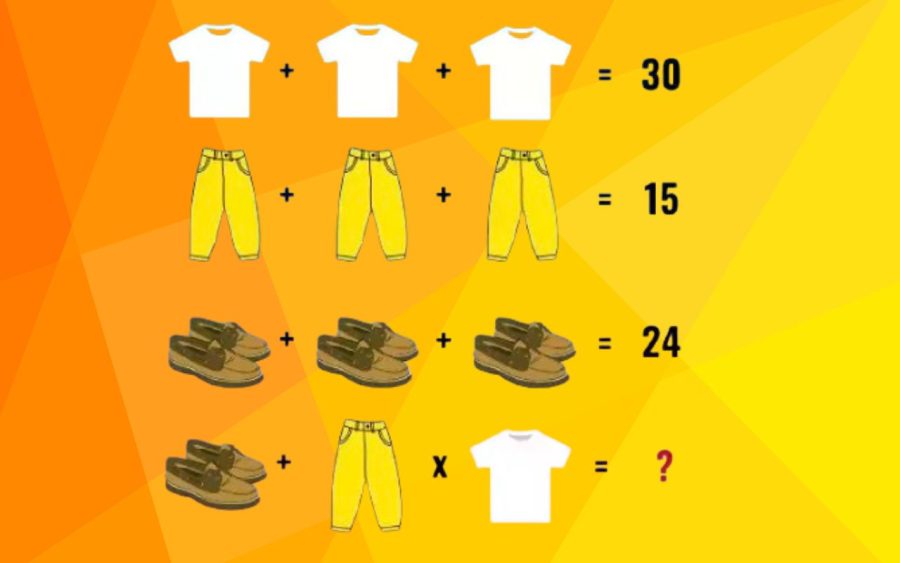- Une paire de chaussures plus un pantalon multiplié par la valeur d’un T-shirt donne le résultat final.