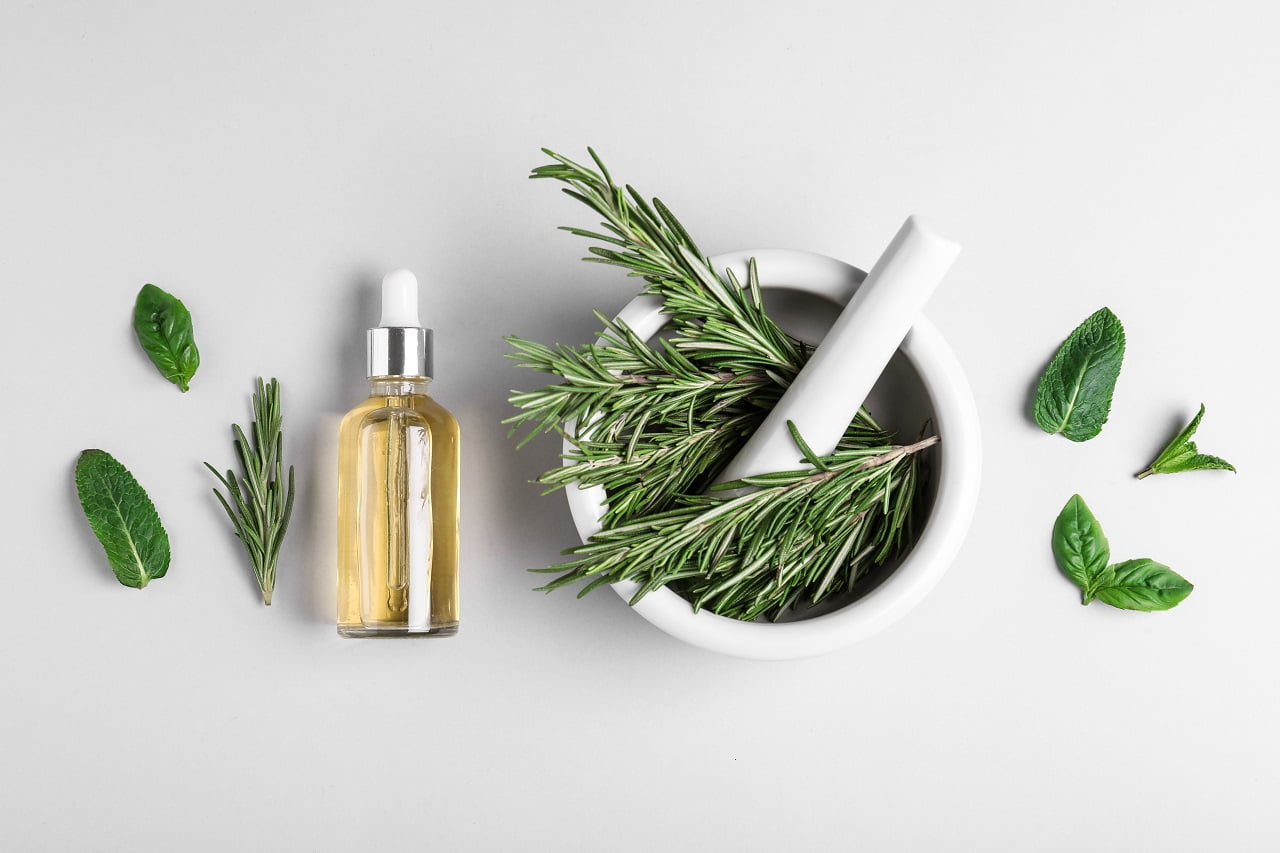 - Mélanger quelques gouttes d’huile essentielle de romarin à votre shampoing habituel ;