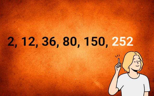 Par conséquent, le nombre manquant dans la séquence 2, 12, 36, 80, 150 est 252.