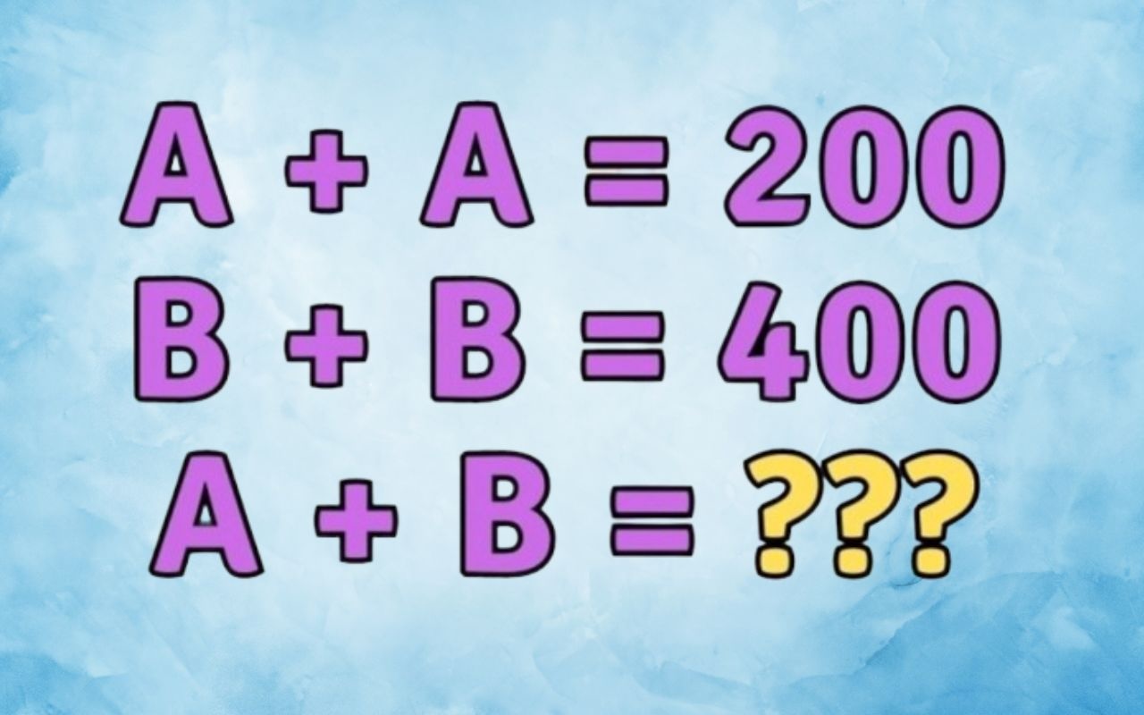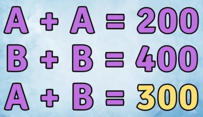 A+B = 300 car A = 100 et B = 200 donc 100+200= 300
