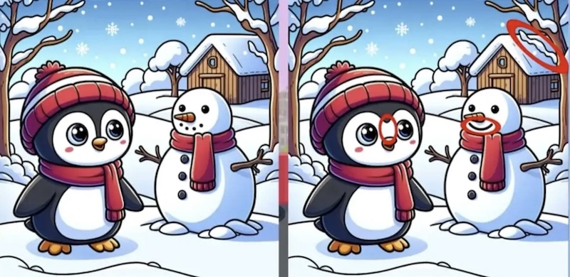 Le jeu des différences est un excellent moyen de tester vos compétences d’observation et votre rapidité. Alors que le temps presse, êtes-vous capable de repérer les subtiles différences entre deux images apparemment identiques ? Dans le défi d’aujourd’hui, vous êtes confronté à une tâche intrigante : trouvez 3 différences dans l’image d’un pingouin et d’un bonhomme de neige en seulement 12 secondes. C’est un casse-tête qui stimule le cerveau et vous pousse à aiguiser votre attention aux détails.