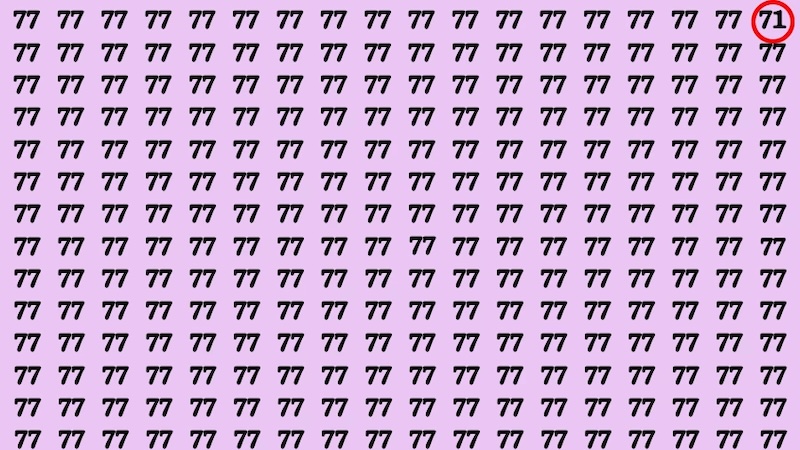 Des études ont démontré qu’en se concentrant sur des détails visuels, nous stimulons des parties spécifiques de notre cerveau, améliorant ainsi notre acuité mentale générale. En cherchant le chiffre 71 parmi tant de 77, vous faites travailler vos neurones, renforcez votre capacité à distinguer les détails et accélérez votre processus de prise de décision. Il s’agit donc d’un exercice bénéfique pour votre cerveau, en plus d’être amusant et stimulant.