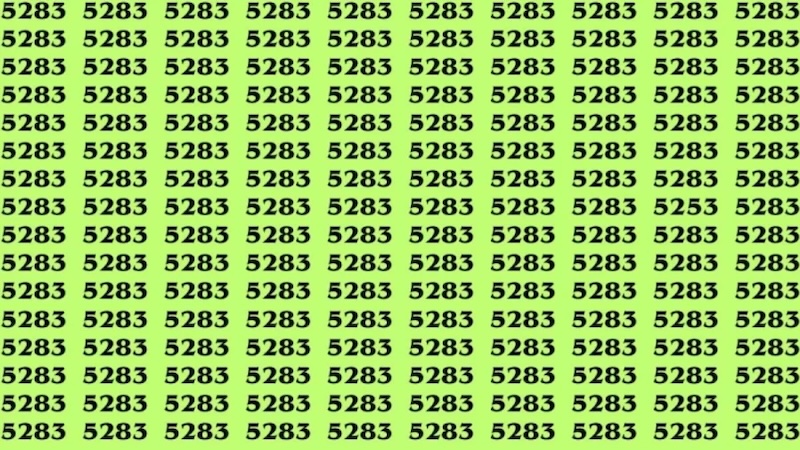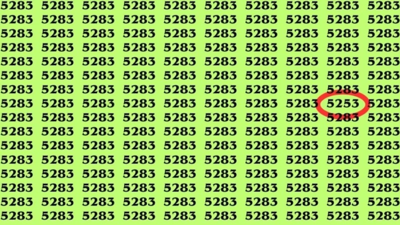Bienvenue dans un nouveau défi cérébral qui testera votre acuité visuelle et votre niveau de concentration. Nous vous mettons au défi de trouver le nombre 5253 parmi une multitude de 5283 en seulement 12 secondes. Cette énigme est un test parfait pour mesurer votre quotient intellectuel visuel et mettre à l’épreuve vos capacités cognitives.