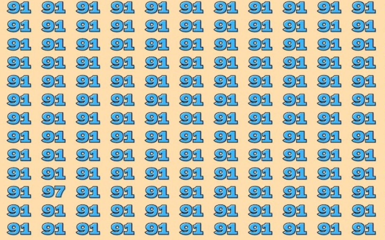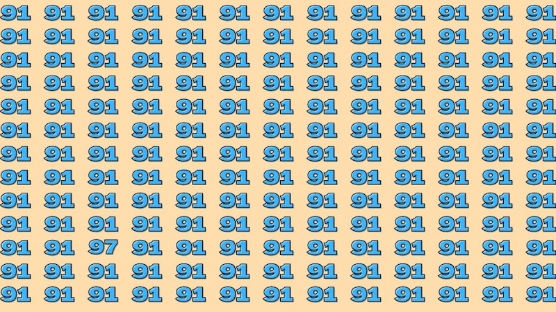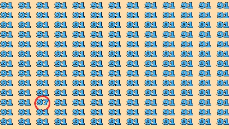 Le test d’observation cérébral consiste à trouver le nombre 97 caché parmi une multitude de nombres 91. La similarité entre les deux chiffres ajoute à la difficulté du casse-tête, obligeant l’observateur à faire preuve de perspicacité et de concentration.