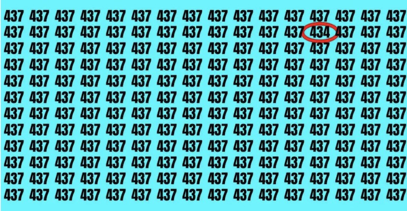 Dans un monde où notre cerveau est constamment sollicité par des stimuli visuels, il existe des tests cérébraux qui ne manquent pas de piquer notre curiosité et de pousser nos capacités à leurs limites. Parmi ces défis, il en est un qui interpelle particulièrement par son énoncé : repérer le nombre 434 parmi un enchevêtrement de 437 dans un délai impitoyable de 7 secondes maximum. Cette prouesse n’est pas à la portée de tous, et seuls les individus dotés d’une acuité visuelle remarquable pourront triompher de ce casse-tête.