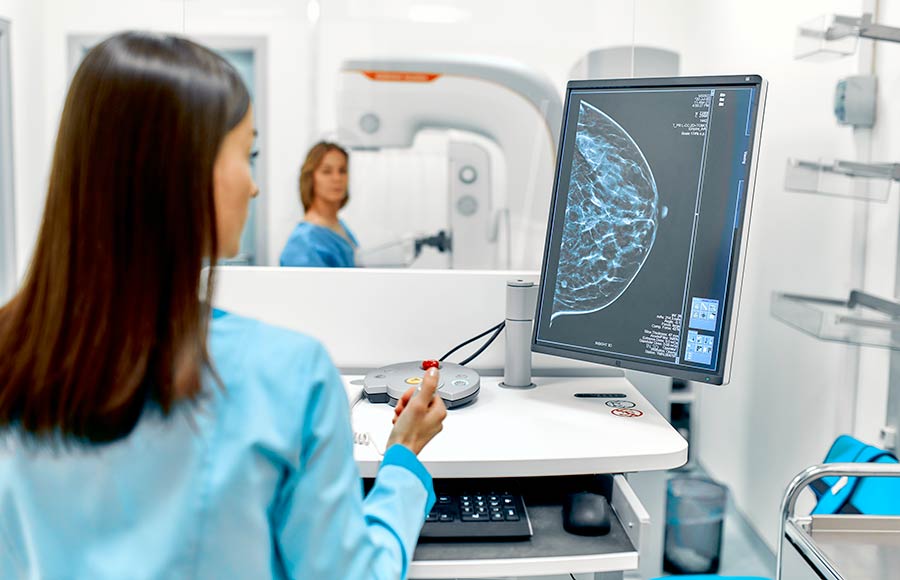 Le diagnostic du cancer du sein repose sur la réalisation d’examens d’imagerie (mammographie, échographie) et de biopsies pour analyser les cellules suspectes. Pour déterminer l’étendue de la maladie, des examens complémentaires peuvent être réalisés, tels que la scintigraphie osseuse ou les scanners.