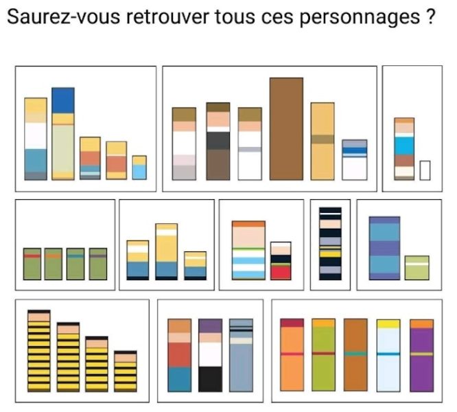 Le jeu est simple : chaque série de blocs de couleur correspond à un personnage bien connu de la culture pop. Votre mission est de les identifier. Voici comment vous pouvez procéder :