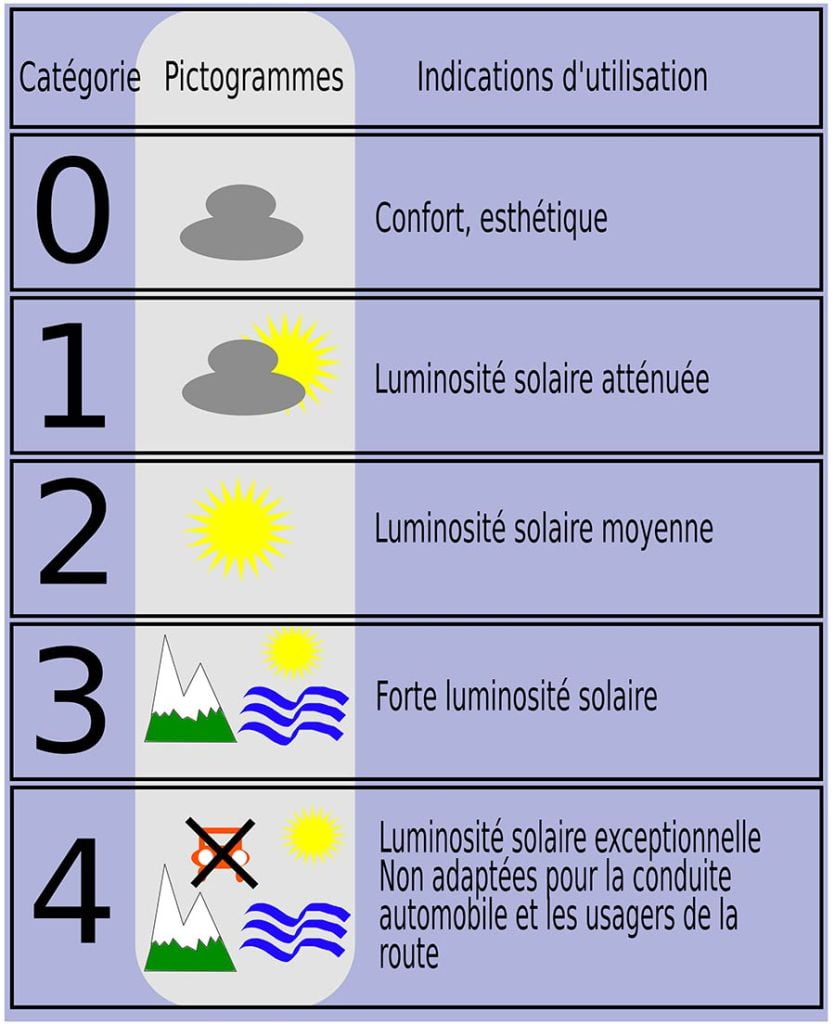 - Un indice de protection 1 pour une vision confortable par un temps dégagé.
