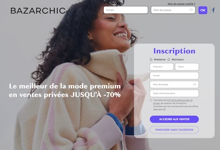 Bazar Chic est un site de ventes événementielles premium en France, créé en 2006. Bazar Chic propose chaque jour 14 nouvelles ventes sélectionnées avec soin, sur des marques de mode, de luxe, de beauté, de décoration, d’épicerie et de vin. Vous pouvez profiter de réductions allant jusqu’à -70% sur des marques comme Schott, Kate Spade, Topshop, Stradivarius, Comptoir des Cotonniers, ou encore KitchenAid.