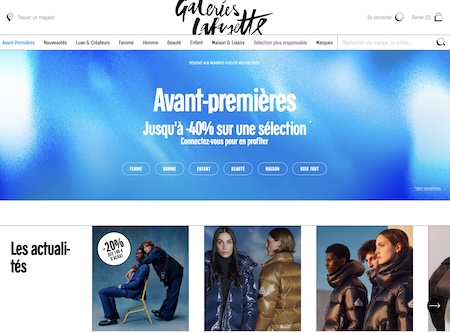 Les Galeries Lafayette sont un grand magasin français de mode, de beauté et de maison. Sur leur site en ligne, vous pouvez retrouver les collections de plus de 800 marques, comme Levi’s, Tommy Hilfiger, Michael Kors, Ralph Lauren, Guess, ou encore Comptoir des Cotonniers. Les Galeries Lafayette proposent des vêtements, des chaussures, des sacs, des bijoux, des montres, des parfums, du maquillage, du linge de maison, de la décoration, et même de l’épicerie fine.