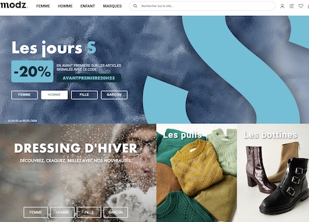 https://www.modz.fr est le site numéro un du déstockage de mode en France. L’e-shop propose chaque jour plus de 600 000 pièces de vêtements, chaussures, accessoires et produits de beauté de grandes marques en surstocks n’ayant pas trouvé preneurs dans leur boutique d’origine. Quant à Maison Seconde, il s’agit des vêtements d’occasion des influenceurs préférés des Français auxquels ceux-ci décident d’offrir une nouvelle vie. Que vous cherchiez des pulls, des jeans, des robes ou des accessoires, vous trouverez votre bonheur parmi les catégories et les marques variées de Modz. Vous pouvez bénéficier de réductions allant jusqu’à -70 % toute l’année, et même plus lors des soldes ou des ventes flash.
