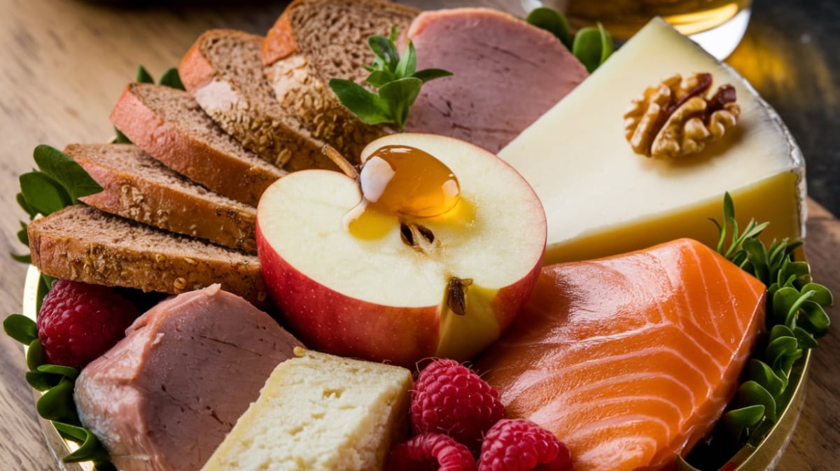 Pour ajouter une touche de fraîcheur et d’acidité, des fruits comme des figues, des quartiers d’orange ou même des grains de grenade sont parfaits. Leur saveur éclatante contraste avec la richesse du foie gras et du saumon, offrant un équilibre subtil et savoureux. Une poignée de jeunes pousses ou de mâche apporte une base légère et croquante, idéale pour accueillir ces ingrédients nobles.