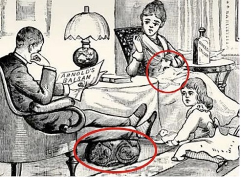 Plongeons-nous dans une illusion optique particulièrement intrigante : une image vintage mettant en scène une famille, où se cachent subtilement deux chats. Cette scène, en apparence banale, représente un homme lisant son journal sur un canapé, sa femme assise sur une chaise face à lui, et leur fille jouant au sol. L’image a été partagée sur les réseaux sociaux par un certain Hectic Nick, qui affirme que seul 1% des observateurs parvient à repérer les deux félins en moins de 20 secondes.