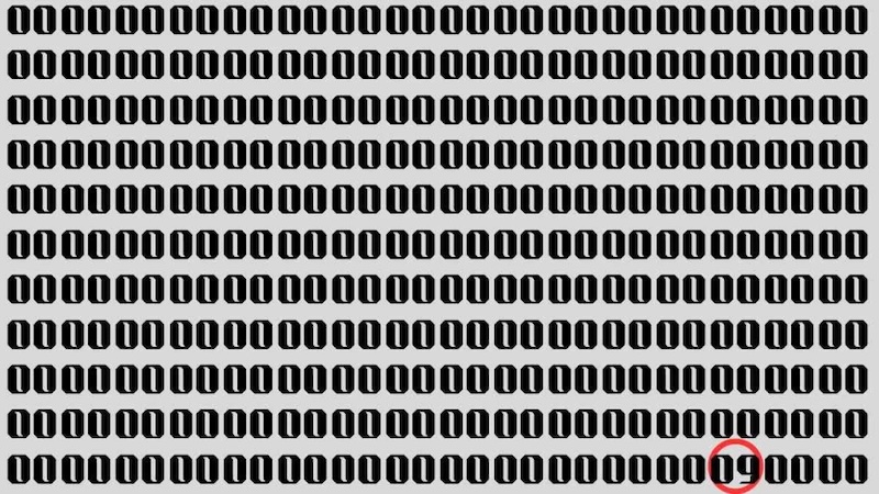 L’énigme est simple mais délicate. Un champ rempli de simples « 00 » est présenté à vous, avec un « 09 » caché quelque part à l’intérieur. Votre objectif ? Trouver ce numéro « 09 » en moins de 13 secondes. Il s’agit d’un défi visuel et de rapidité, pouvez-vous repérer la différence dans ce champ de similarité ? Et c’est également un défi pour votre esprit, pouvez-vous traiter rapidement l’information et repérer le « 09 »?